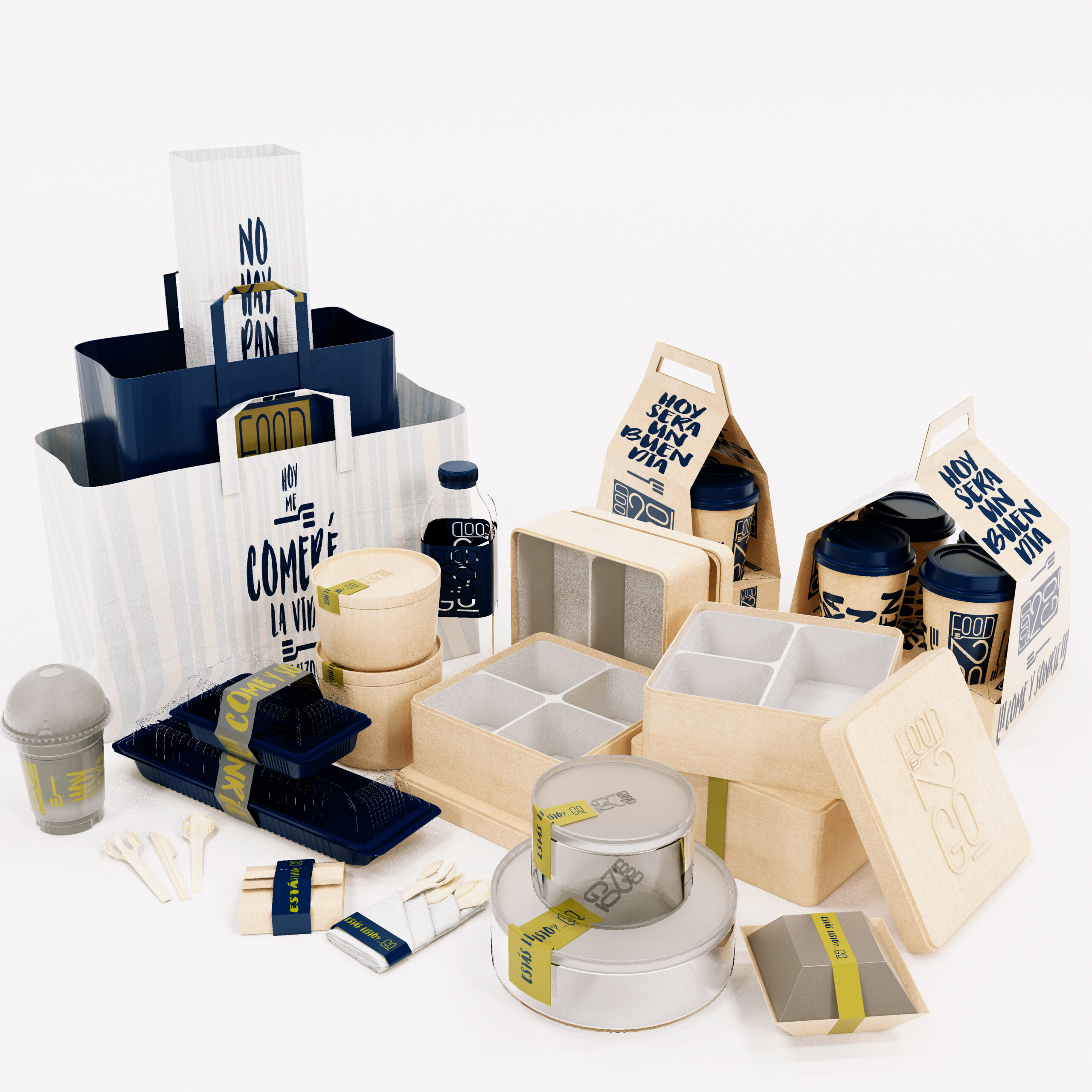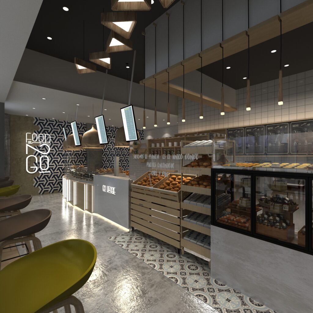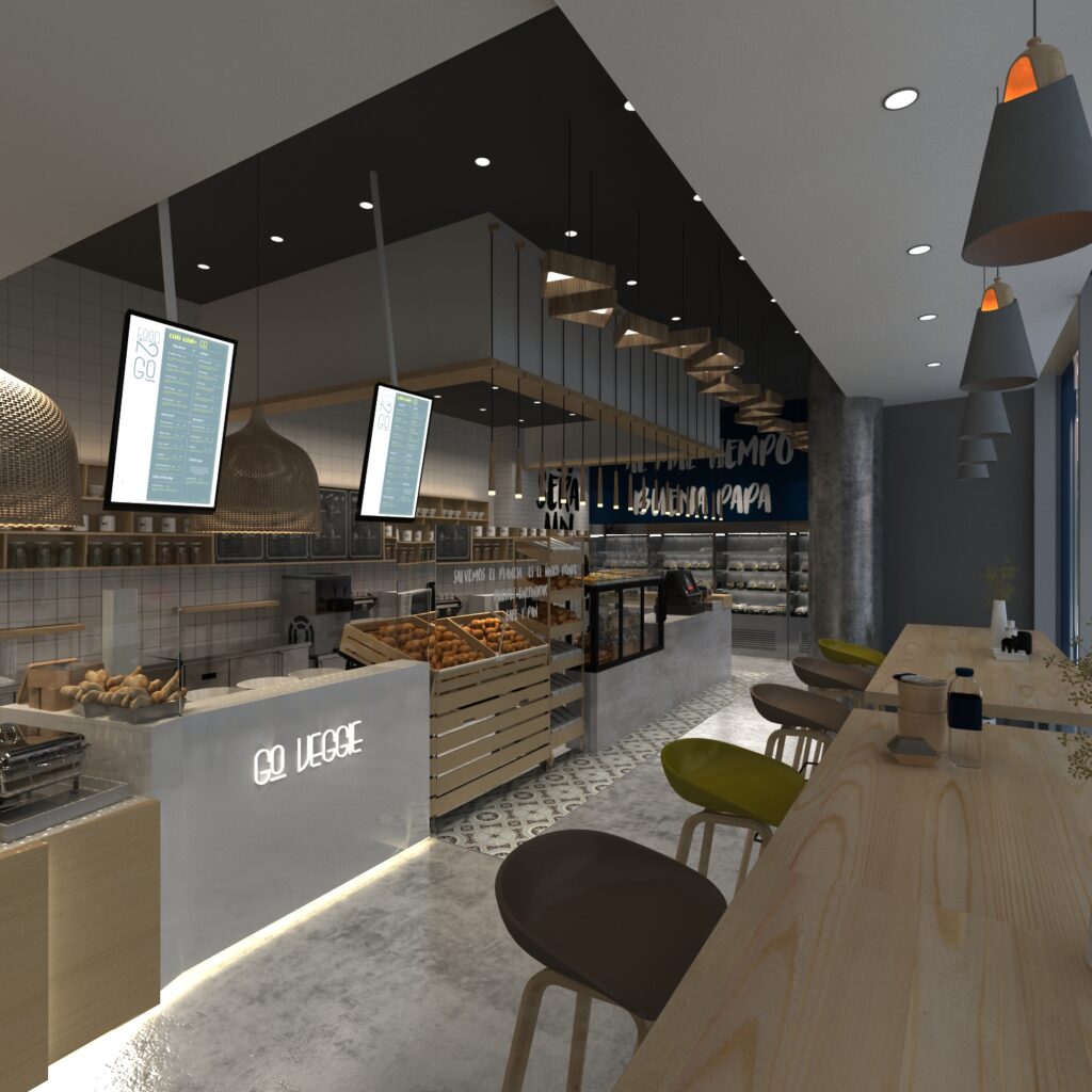 El diseño de éste concepto es una combinación de líneas curvas y rectas que dinamizan el carácter de la marca, su paquetería mezcla un juego versátil, con carácter y sutil que combina de manera perfecta, capaz de representar en forma equilibrada y armónica la frescura del producto que FOOD TO GO ofrece.