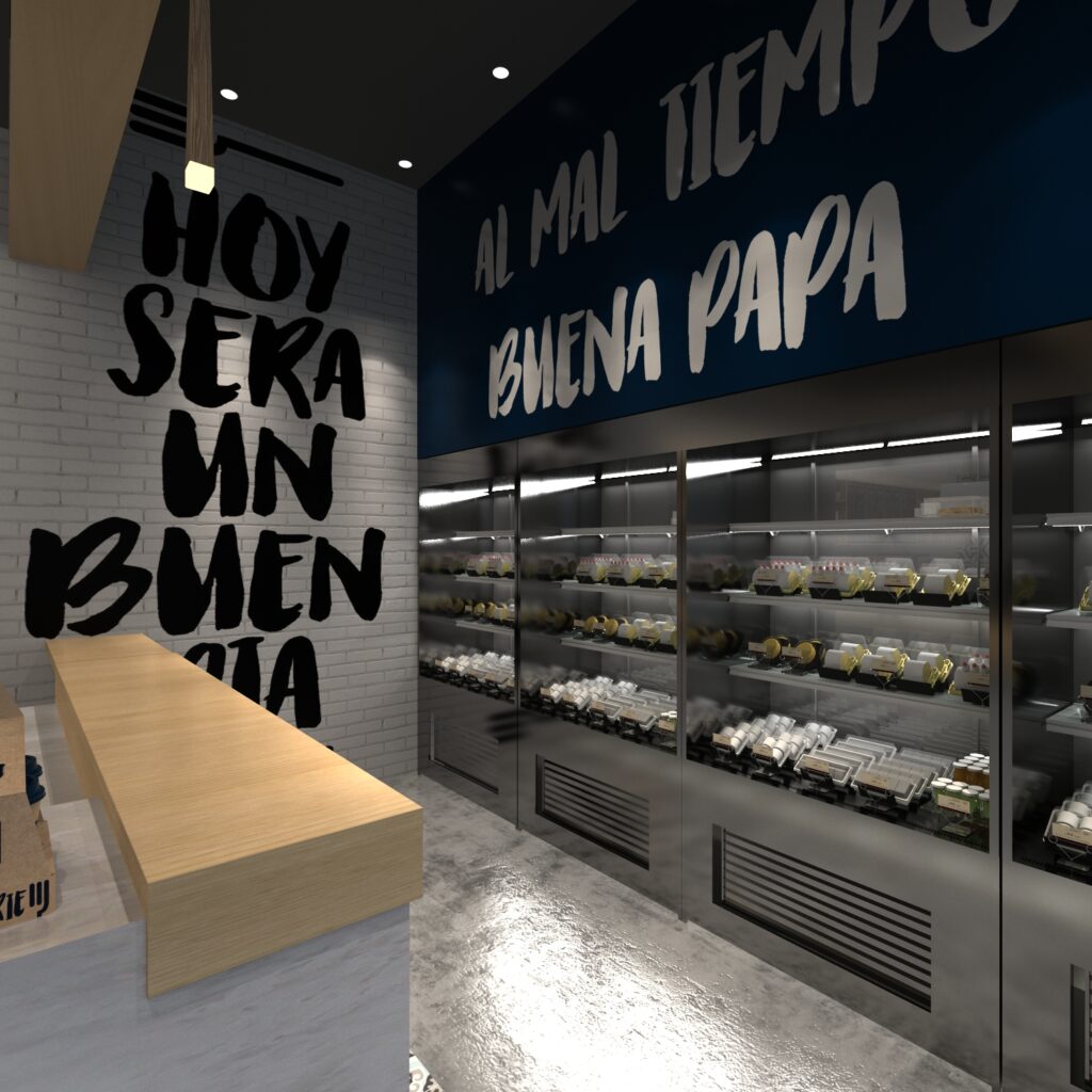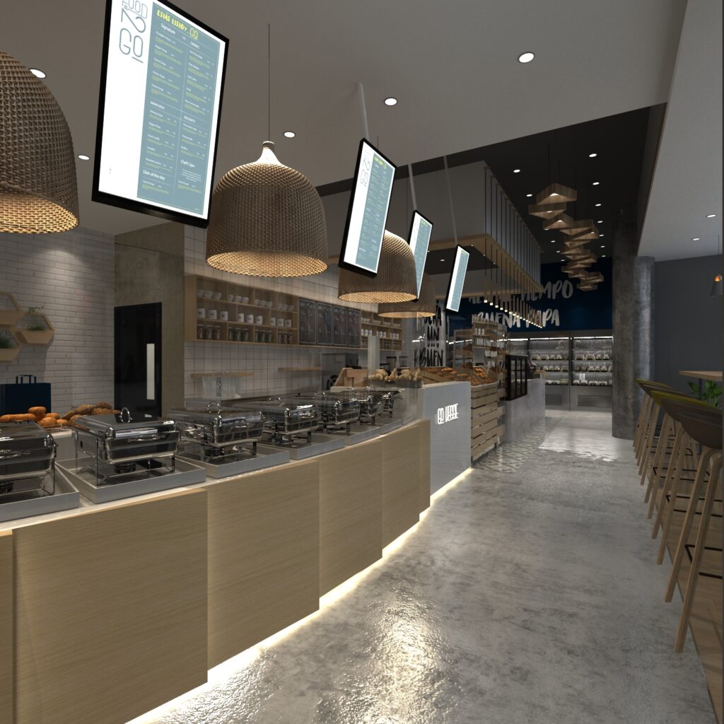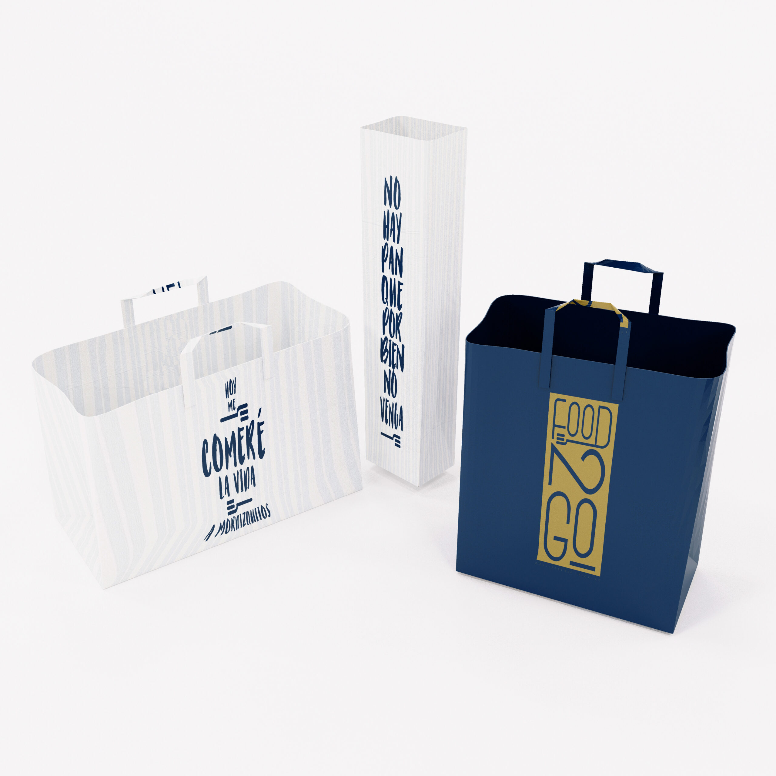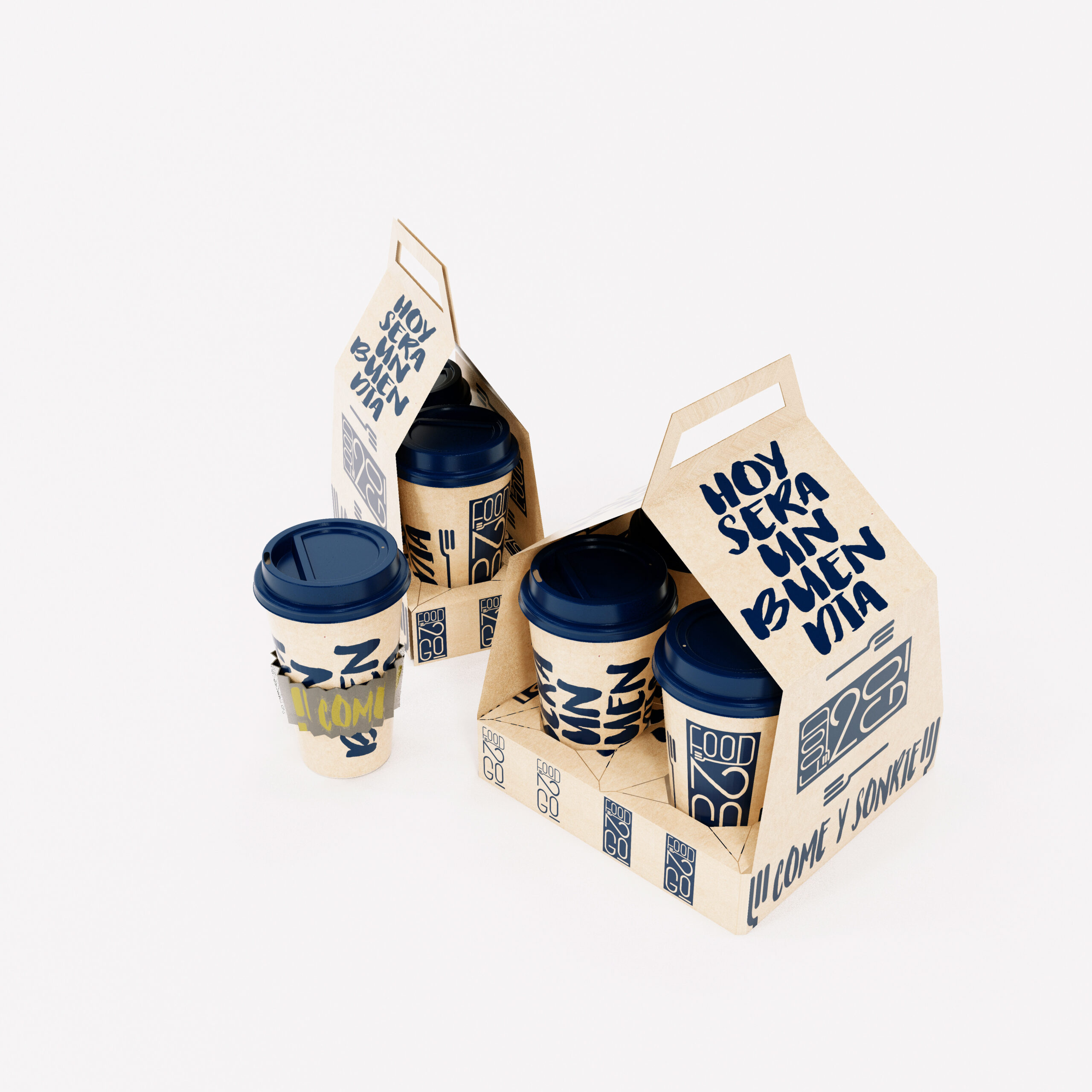 El diseño de éste concepto es una combinación de líneas curvas y rectas que dinamizan el carácter de la marca, su paquetería mezcla un juego versátil, con carácter y sutil que combina de manera perfecta, capaz de representar en forma equilibrada y armónica la frescura del producto que FOOD TO GO ofrece.